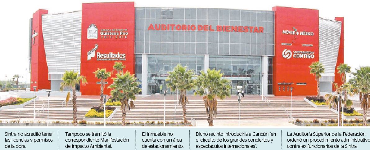 CANCÚN, Q. Roo.- En el último tramo del sexenio anterior, la Auditoría Superior de la Federación (ASF) ordenó a la Secretaría de la Gestión Pública de Quintana Roo iniciar un procedimiento administrativo sancionatorio en contra de ex funcionarios de la Secretaría estatal de Infraestructura y Transporte (Sintra), que por acción u omisión permitieron que el Auditorio del Bienestar –obra emblemática del ex gobernador Roberto Borge– se construyera sin dictámenes, permisos ni licencias correspondientes.