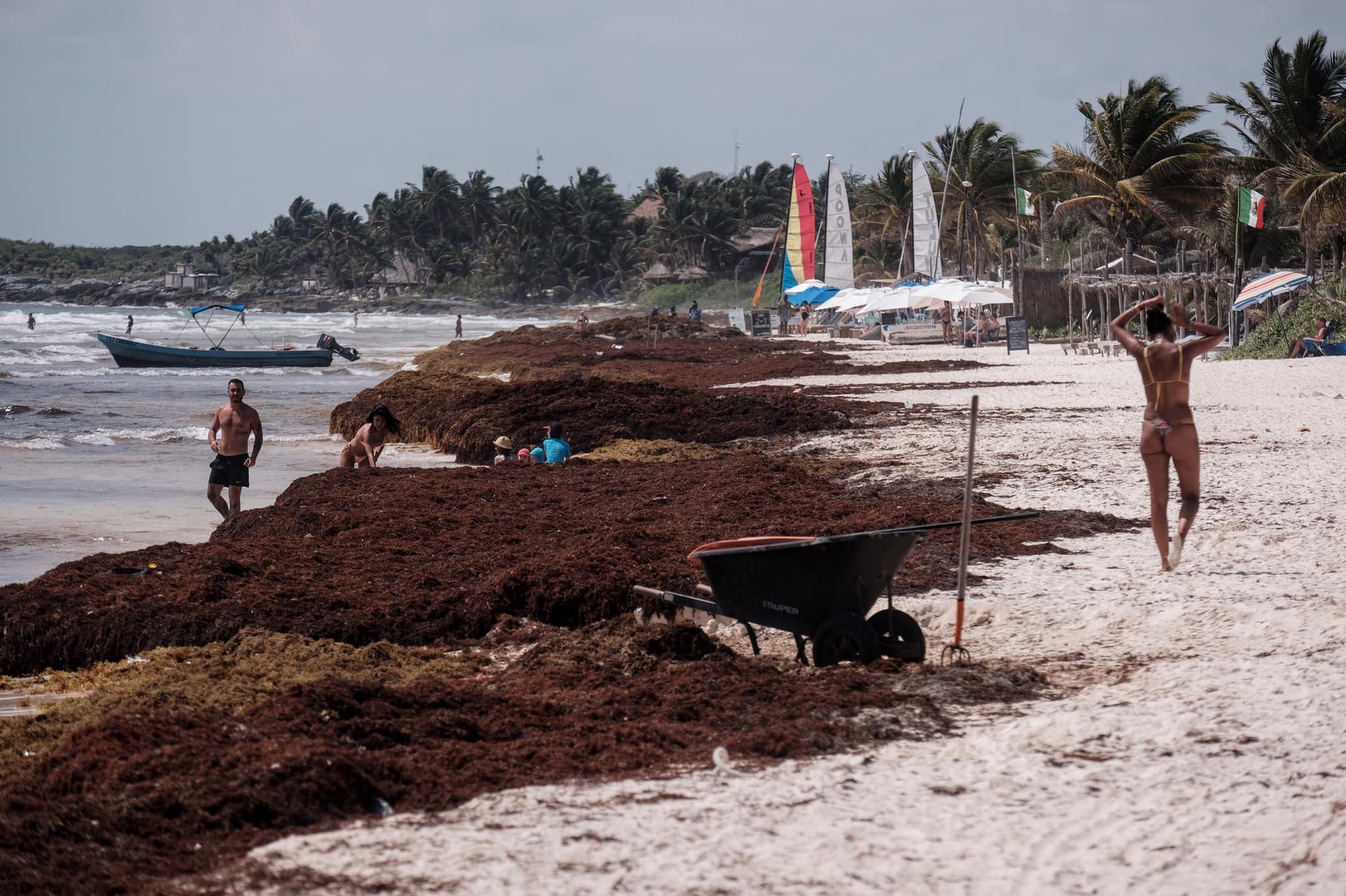 “En algunas notas periodísticas se informa que en dos días la Marina llega a recoger 15 toneladas de sargazo en altamar, pero eso no es nada, pues en Puerto Morelos las bandas que se han instalado para recogerlo en la playa recogen 15 toneladas por hora”, explicó.
