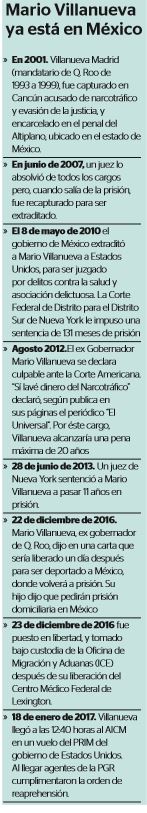 Explicó que Villanueva Madrid fue entregado en extradición a Estados Unidos el 8 de mayo de 2010, luego de declararse culpable del delito de lavado de dinero, por lo que la Corte Federal de Distrito para el Distrito Sur de Nueva York le impuso una sentencia de 131 meses de prisión, acreditándosele el tiempo que estuvo detenido en México antes de su extradición.