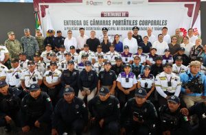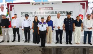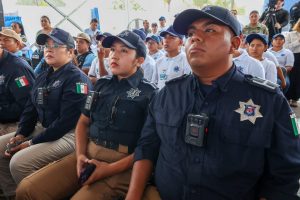 Cancún,- “Hoy damos un paso muy importante: a partir de este día, entran en operación 725 cámaras corporales, que portarán todas y todos los policías en labores de calle: Seguridad Ciudadana, Tránsito, GEAVIG, Policía Auxiliar, Policía Turística y el Grupo de Búsqueda y Localización”, subrayó la Presidenta Municipal, Ana Paty Peralta, al encabezar con la gobernadora Mara Lezama, la entrega de dichos dispositivos para los elementos de corporación.
