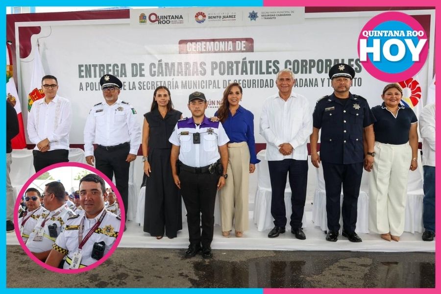 Cancún,- “Hoy damos un paso muy importante: a partir de este día, entran en operación 725 cámaras corporales, que portarán todas y todos los policías en labores de calle: Seguridad Ciudadana, Tránsito, GEAVIG, Policía Auxiliar, Policía Turística y el Grupo de Búsqueda y Localización”, subrayó la Presidenta Municipal, Ana Paty Peralta, al encabezar con la gobernadora Mara Lezama, la entrega de dichos dispositivos para los elementos de corporación.