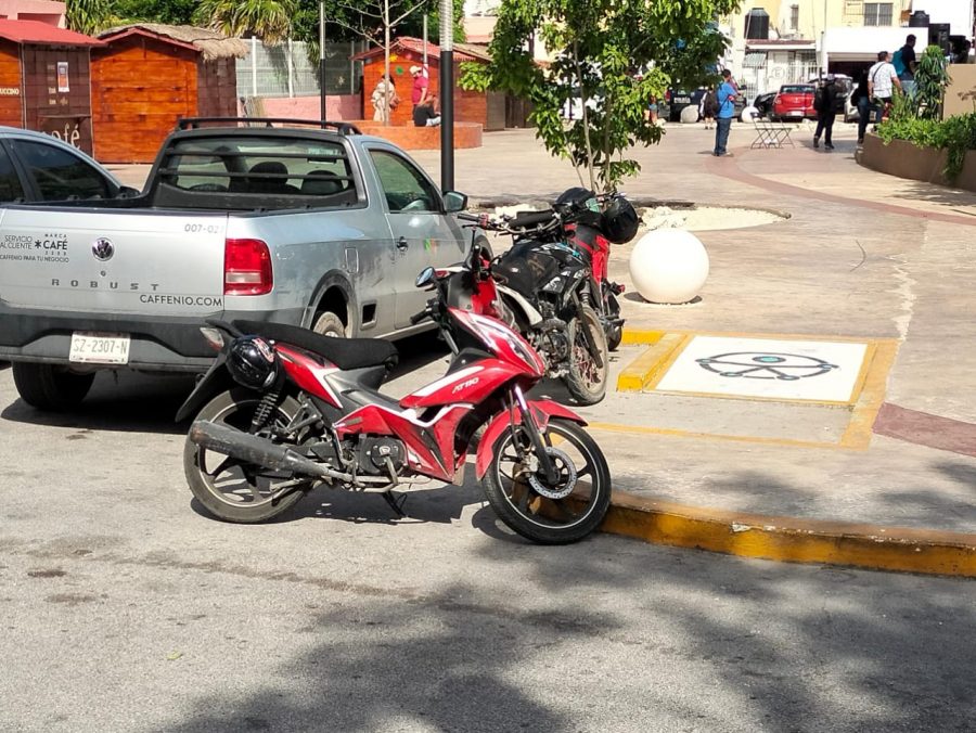 Otra motocicleta más fue captada obstaculizando el paso en una rampa ubicada en el estacionamiento del Oxxo que está detrás del Parque de Las Palapas.