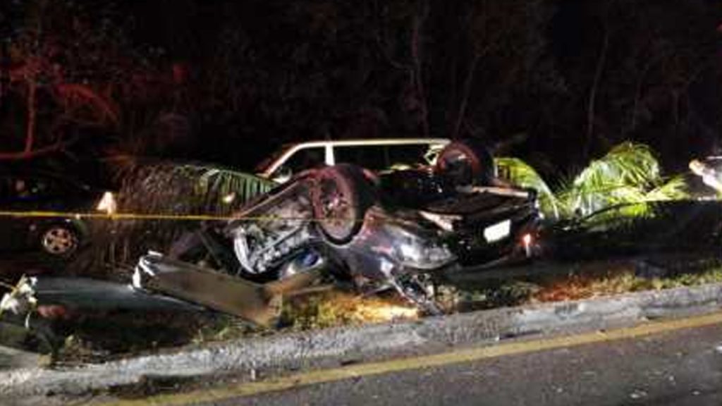 El accidente ocurrió alrededor de las 23:30 horas, cuando un automóvil deportivo, tipo Camaro, de color negro, quedó fuera de control por el exceso de velocidad y se proyectó contra el camellón central, donde impactó y derribó por lo menos una palmera y un poste del alumbrado público, para después terminar volcado.