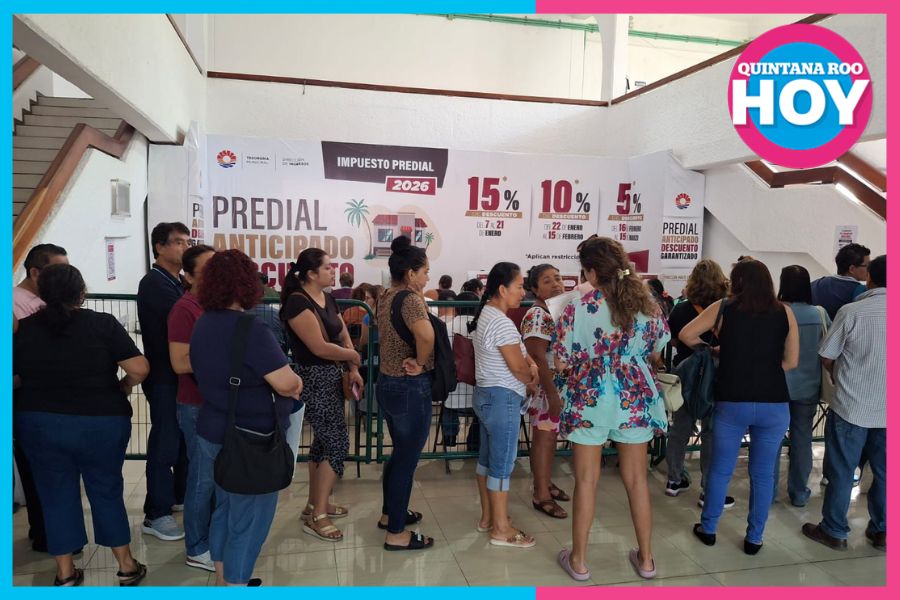 Cancún.- Desde las primeras horas de este 7 de enero, cientos de contribuyentes formaron extensas filas en el Palacio Municipal de Benito Juárez y otros módulos de pago en Cancún, a fin de aprovechar el descuento del 15% en el impuesto predial correspondiente al año 2026.