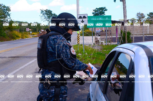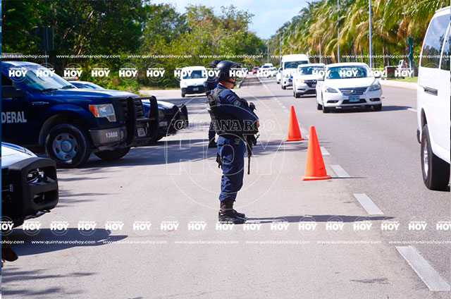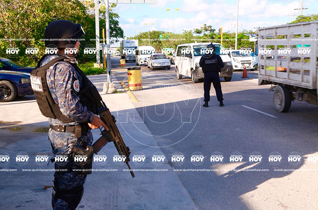 Aunado a esto, efectivos de la Policía Estatal Preventiva y del Ejército Mexicano instalaron puestos de revisión en diferentes avenidas perimetrales importantes, como Nichupté y Bonampak, donde hicieron revisiones minuciosas a vehículos sospechosos de todo tipo; buscaban armas de fuego, drogas, delincuentes con orden de aprehensión, unidades robadas y fugitivos buscados en otros estados o países.