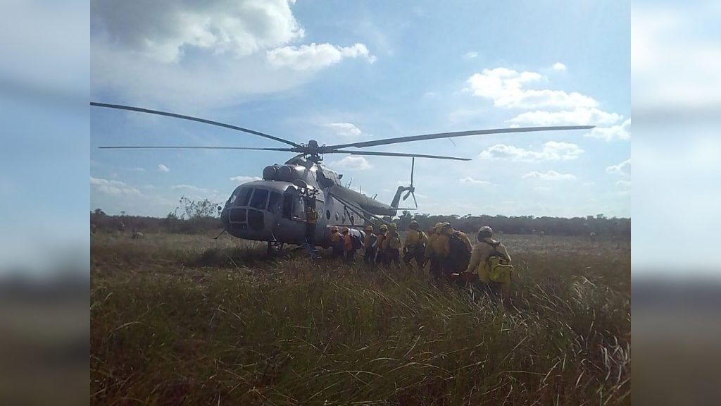 La Fuerza Aérea Mexicana transportó a los combatientes a los perímetros asignados. En los helicópteros con matrícula 1705 y 1723 se movilizó y desmovilizó a 262 elementos. También se efectuó un vuelo de verificación y supervisión, la conflagración sigue presentando actividad de fuegos en el área.