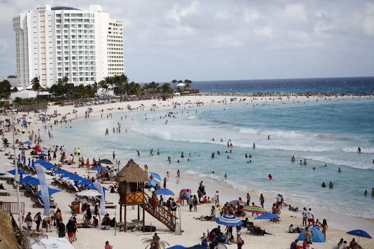 CANCÚN.- A pesar del mal clima que está generando el Frente Frio número 20 en la región, turistas nacionales y extranjeros abarrotaron este sábado las principales playas de la Zona Hotelera de esta ciudad.