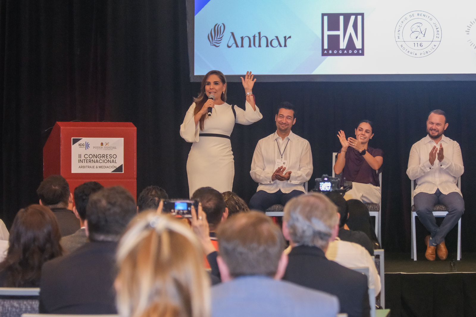 Asistieron a la ceremonia inaugural la presidenta Ana Paty Peralta de la Peña, quien dio la bienvenida; la secretaria de Gobierno, Cristina Torres Gómez; el presidente del Comité de Arbitraje Sureste de ICC México, Jorge Carlos Toledo Sauri, y el presidente de la Junta de Gobierno y Coordinación Política del Congreso del Estado, Humberto Aldana Navarro.