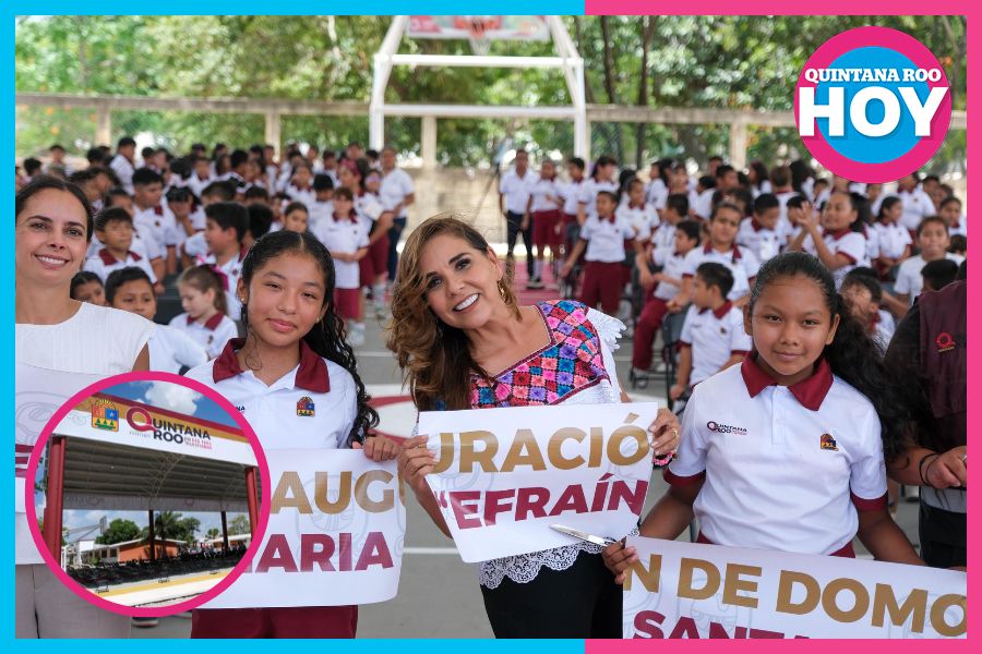 Cancún.- En medio de un ambiente festivo y lleno de algarabía, la gobernadora, Mara Lezama Espinosa inauguró el domo de la Escuela Primaria “Efraín Santana Sánchez”, ubicada en Cancún, en un acto que también incluyó la Firma del Nuevo Acuerdo por el Bienestar y Desarrollo de Quintana Roo.