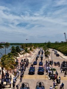 A este banderazo se sumó el comandante de la 5ta. Región Naval, el Almirante Guadalupe Juan José Bernal Méndez; el comandante de la Guarnición Militar de Cancún, Claudio Edmundo Guízar de la Torre; el coordinador general de la Guardia Nacional en el Estado, el General, José Luis Martínez Rojas; el fiscal del Estado, Raciel López Salazar; el titular de la oficina de representación del Instituto Nacional de Migración, Carlos Manuel Bandala González; el titular de la Fiscalía Especializada en Combate a la Corrupción, Edgar Ramírez Morales; el diputado, Ricardo Velasco Rodríguez; el delegado federal de programas para el bienestar de Quintana Roo, Arturo Abreu Marín, entre otros.