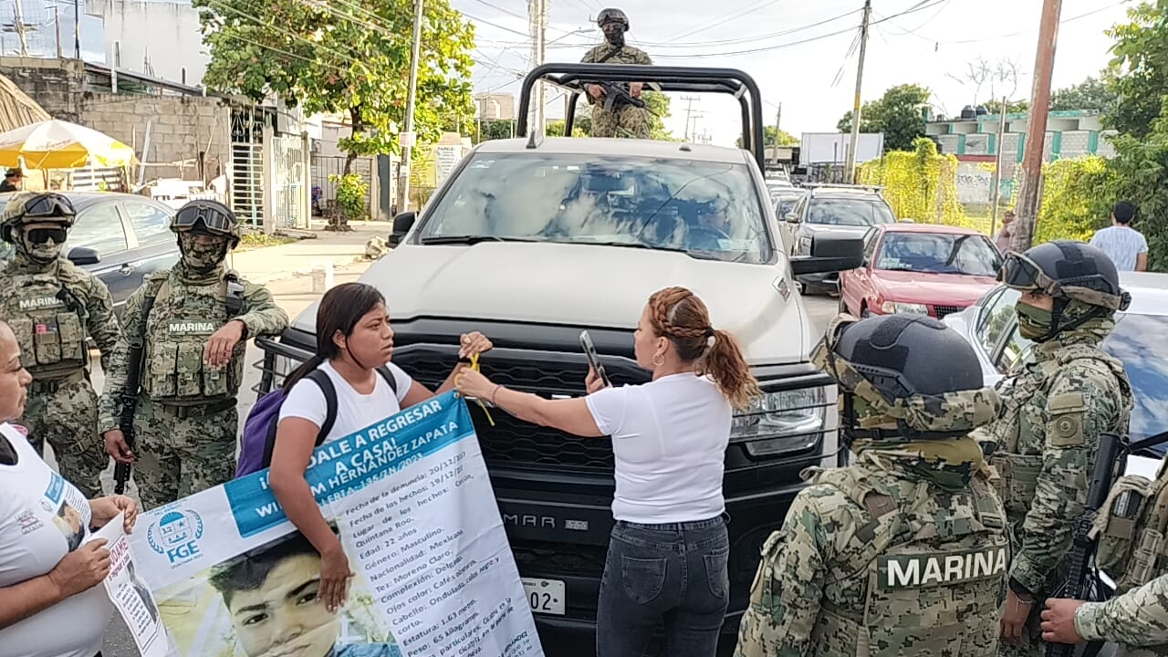CANCÚN.- Elementos de la Secretaría de Marina (Semar) agredieron a integrantes del grupo Madres Buscadoras que realizaron una manifestación frente a la base de la Unidad Antisecuestros de la Fiscalía General del Estado. (FGE) en la Supermanzana 86 de esta ciudad.