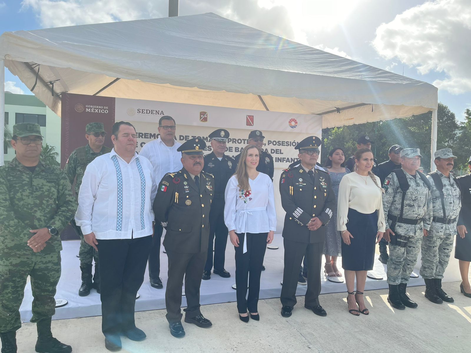 CANCÚN.- El teniente coronel Jaime Contreras Limón rindió protesta y tomó posesión de bandera como comandante del 64 Batallón de Infantería durante una ceremonia solemne que se realizó esta mañana en el campo militar ubicado en el Ramal norte, en la Zona Continental de Isla Mujeres.