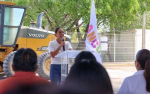 Al realizar el banderazo acompañada por alumnos, profesores, administrativos y vecinos, la Presidenta Municipal destacó que dicha calle apenas tenía tres centímetros de espesor y ahora contará con 15 centímetros para garantizar su durabilidad.