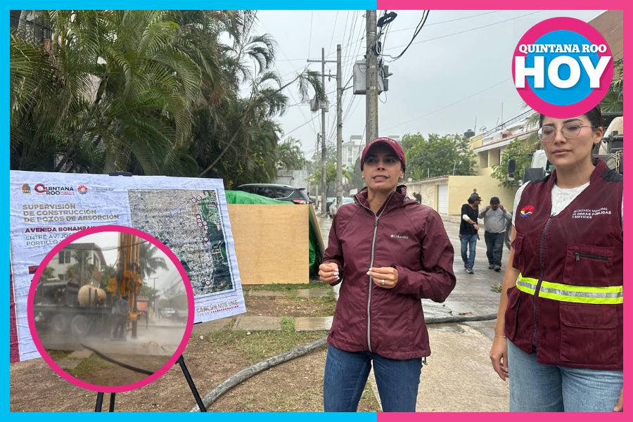 Cancún,.- Con el fin de consolidar proyectos que mejoren la calidad de vida de las y los cancunenses, la Presidenta Municipal, Ana Paty Peralta, supervisó los trabajos de construcción de pozos de absorción en la Avenida Bonampak, entre la Avenida José López Portillo y el Boulevar Colosio, que llevan más de un 40 por ciento de avance, como una acción estratégica para prevenir encharcamientos y reforzar la seguridad vial en temporada de lluvias, respondiendo a una de las principales demandas ciudadanas.