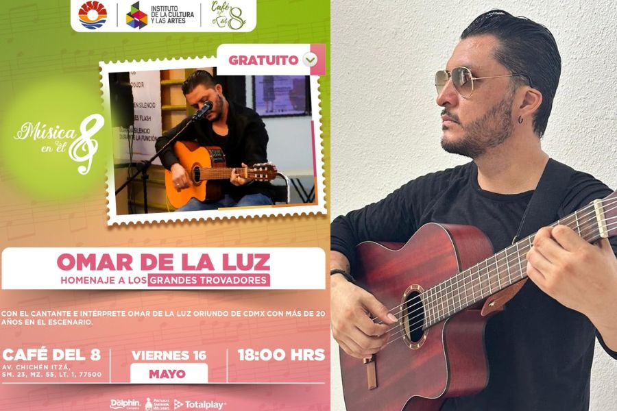 Cancún, Q.R.- Esta tarde, el corazón de Cancún latirá al ritmo de la trova con la presentación del cantautor Omar de la Luz, quien llegará al Café del 8 como parte del ciclo “Viernes de música” impulsado por el Instituto de la Cultura y las Artes de Cancún.