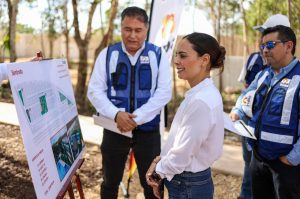 Durante su recorrido por el sitio, Ana Paty Peralta señaló que el proyecto central es un mega parque con diferentes amenidades para uso común como cancha de usos múltiples, área de ejercitadores con cinco aparatos, dos áreas de juegos infantiles, pista de jogging, dos palapas, pet park (parque para mascotas), mesas de concreto e inclusive una alberca con chapoteadero.
