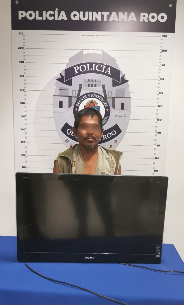 Cancún, Quintana Roo a 3 de junio 2022.- Elementos de la Policía Quintana Roo en Benito Juárez lograron la detención de Valentín N., de 42 años, oficio chatarrero, por el delito de robo a comercio.