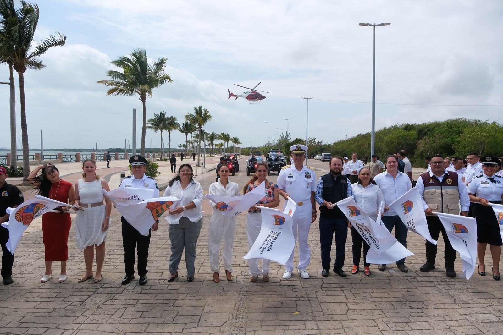 CANCÚN.- En el malecón Tajamar se puso en marcha el Operativo de Seguridad Vacacional de Semana Santa Quintana Roo 2024, con el objetivo de garantizar la integridad física de las y los visitantes al estado, nacionales e internacionales, así como a los habitantes.