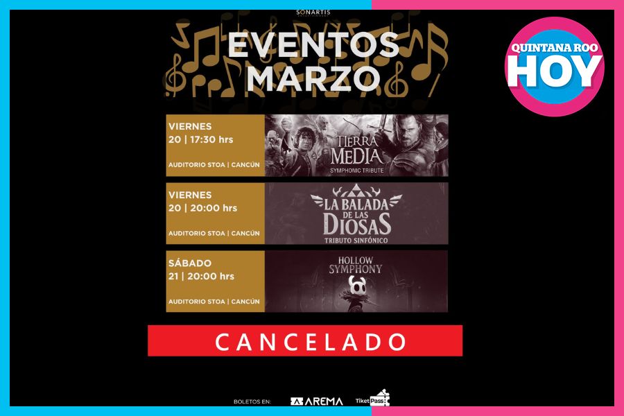 Cancún.- El público de Cancún que esperaba disfrutar de tres producciones sinfónicas inspiradas en universos de fantasía y videojuegos recibió una actualización importante: las presentaciones programadas de “Tierra Media Symphonic Tribute”, “La Balada de las Diosas” y “Hollow Symphony” no se realizarán en las fechas originalmente anunciadas.