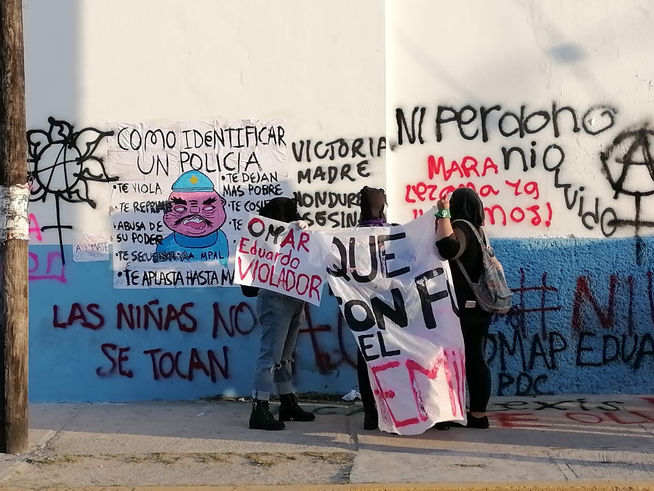 Muchas de ellas con pancartas en las manos denunciando asesinados y violadores, realizaron además pintas en las paredes de la dependencia y quemaron basura en el portón principal. de la redacción