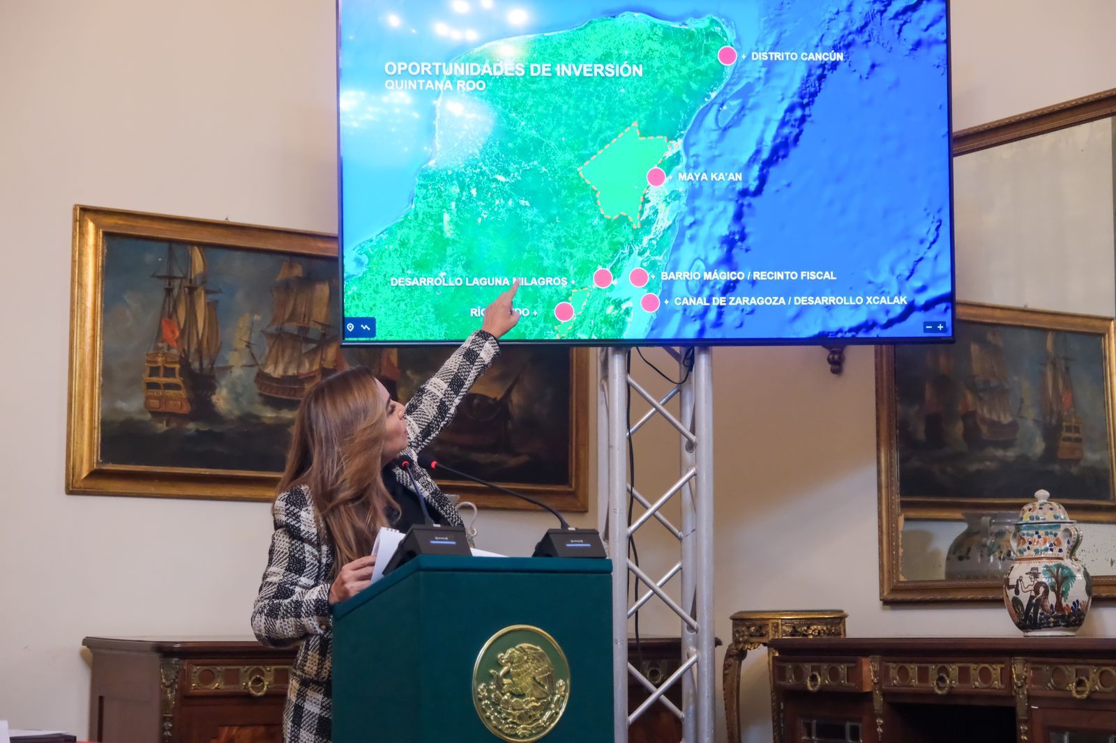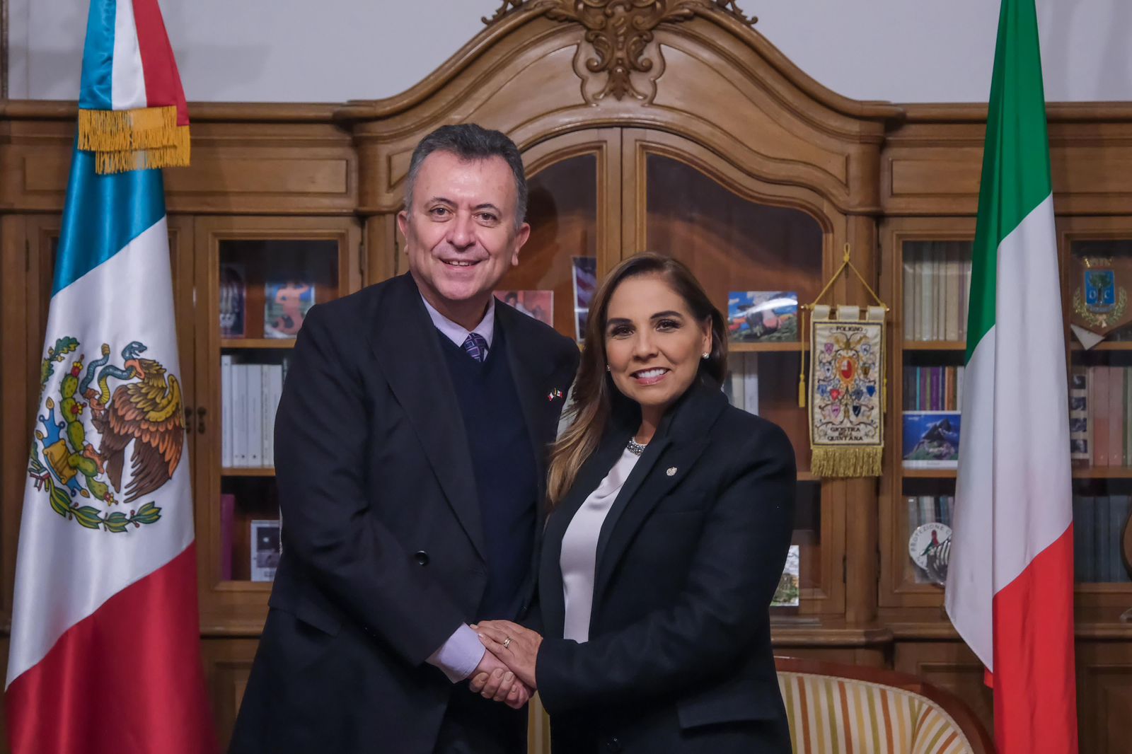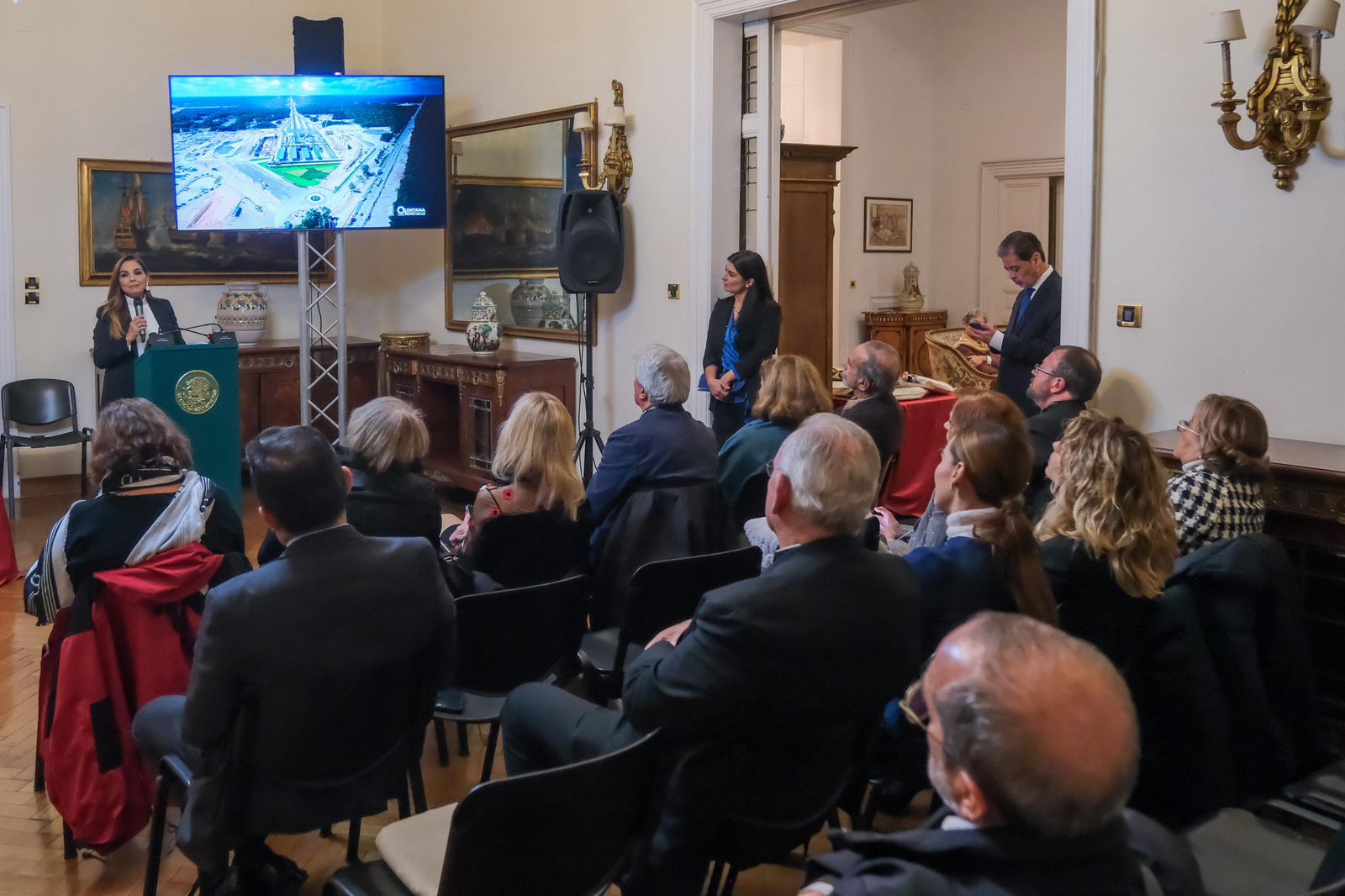 En la Embajada de México en Italia, con la presencia del Exmo. Embajador Carlos García de Alba y de la Presidenta de la CaMexItal Letizia Magaldi, la gobernadora Mara Lezama explicó que uno de los objetivos de esta visita de trabajo es fortalecer las relaciones con socios estratégicos e identificar oportunidades de colaboración para el fortalecimiento del turismo en la entidad.