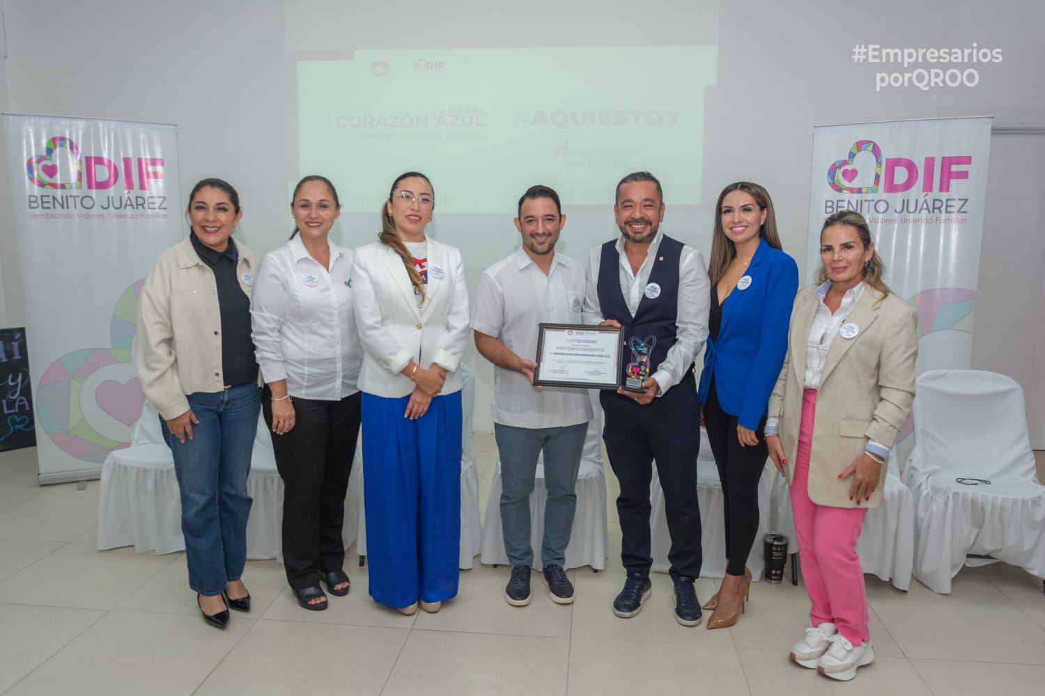 El presidente de la organización, el Lic. Sergio León, en representación de todos quienes forman parte de esta agrupación, recibió el reconocimiento de manos del Lic. Pablo Gutiérrez, Secretario General del H. Ayuntamiento de Benito Juárez, en representación de la Presidenta Municipal Lic. Ana Paty Peralta; y de la Lic. Marisol Sendo Rodríguez, directora general del DIF de Benito Juárez, en representación de la presidenta Honoraria del DIF Quintana Roo, Lic. Verónica Lezama.