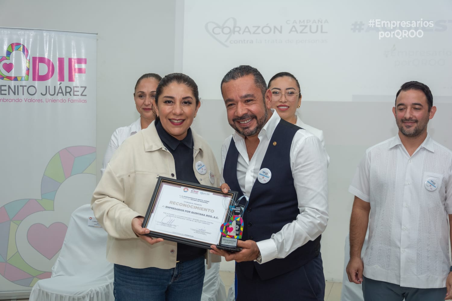 La Campaña Corazón Azul, #AquíEstoyContraLaTrata, lidera esfuerzos para concientizar, involucrar y comprometer a la sociedad en la prevención de este delito. La entrega del distintivo a #EmpresariosporQRoo marca un hito al ser el primer organismo no perteneciente al sector hotelero en recibir esta distinción.