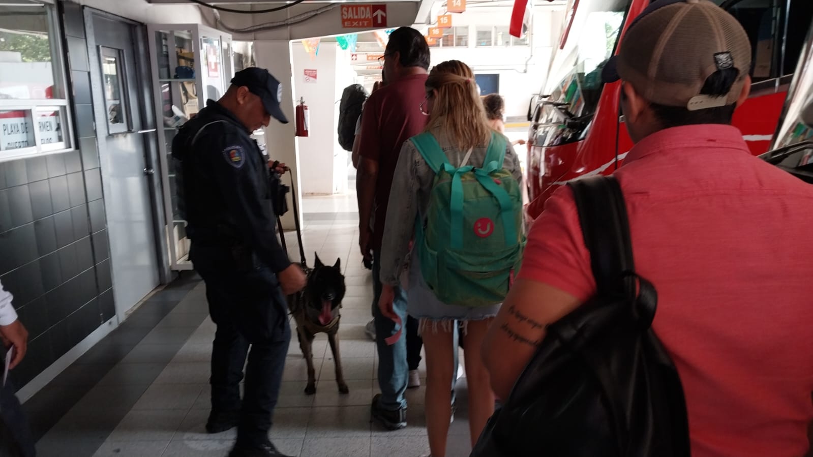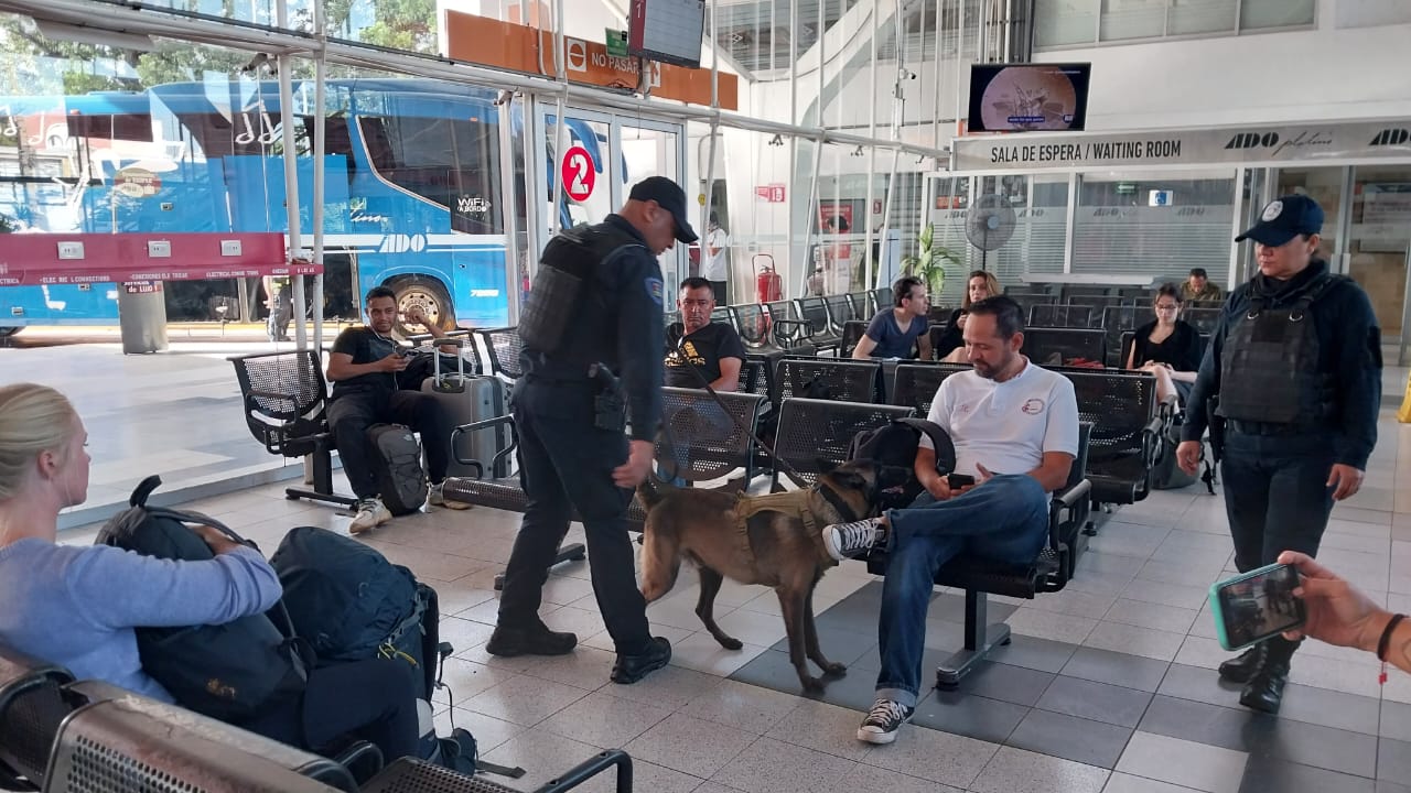 Autoridades locales realizaron operativo de búsqueda de objetos sospechosos así también de droga y otros hacia el interior de las terminales entre ellos ADO, ubicada en la supermanzana 23, con el objetivo de tener un viaje seguro en esta localidad.