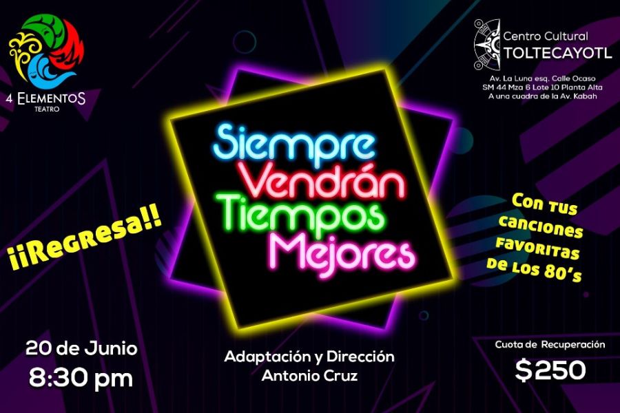 Cancún.- Luego de varias temporadas exitosas, regresa a escena la entrañable puesta en escena Siempre vendrán tiempos mejores, una obra que mezcla comedia, misterio, música ochentera y un profundo mensaje sobre la diversidad y el amor en todas sus formas.