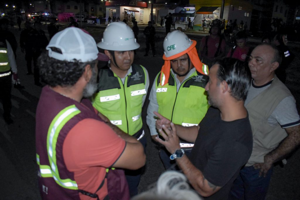Durante su visita, el Secretario General coordinó acciones con personal de la Comisión Federal de Electricidad (CFE), Servicios Públicos Municipales y elementos del Heroico Cuerpo de Bomberos. Gracias a esta intervención, minutos después se restableció el servicio de electricidad en la zona.