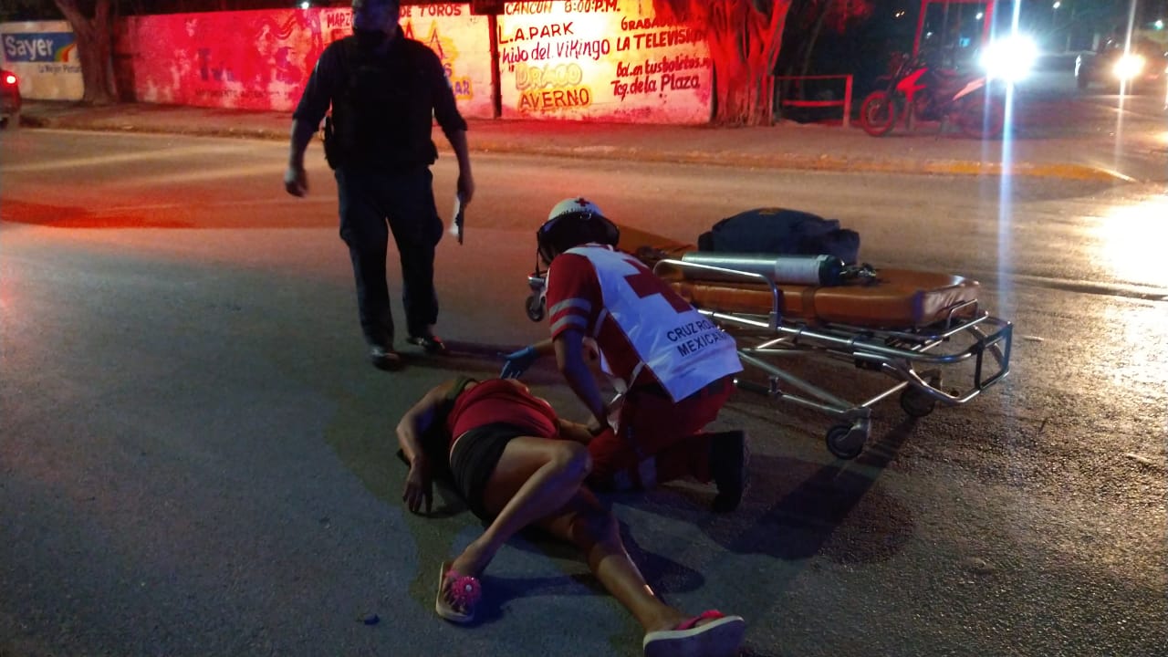 Cancún. Con probable traumatismo craneoencefálico resultó una mujer que resbaló y cayó sobre la vía pública, pero antes había sido golpeada por su concubino.
