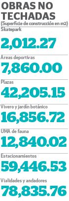 En esta área se ubica un gran auditorio abierto en la parte superior y abajo se genera un gran vestíbulo. - Canchas deportivas, skatepark y plazas: