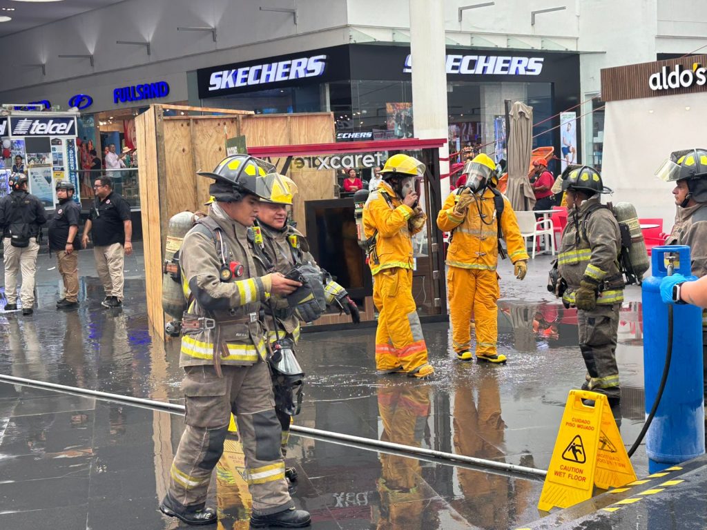 Cancún,.-La gobernadora de Quintana Roo, Mara Lezama, atestiguó este viernes un simulacro de explosión con incendio en el centro comercial Malecón Las Américas de Cancún, en el marco del Día Nacional de Protección Civil.