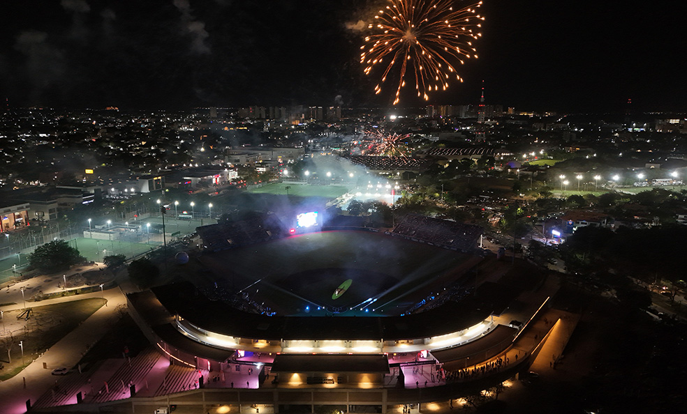 Cancún.- Más de nueve mil aficionados llenaron el Estadio Sherwin-Williams Beto Ávila para vivir una noche inolvidable en la inauguración de la temporada 2026 de la LMB. La guarida bengalí se convirtió en epicentro de fiesta, música y pasión beisbolera.