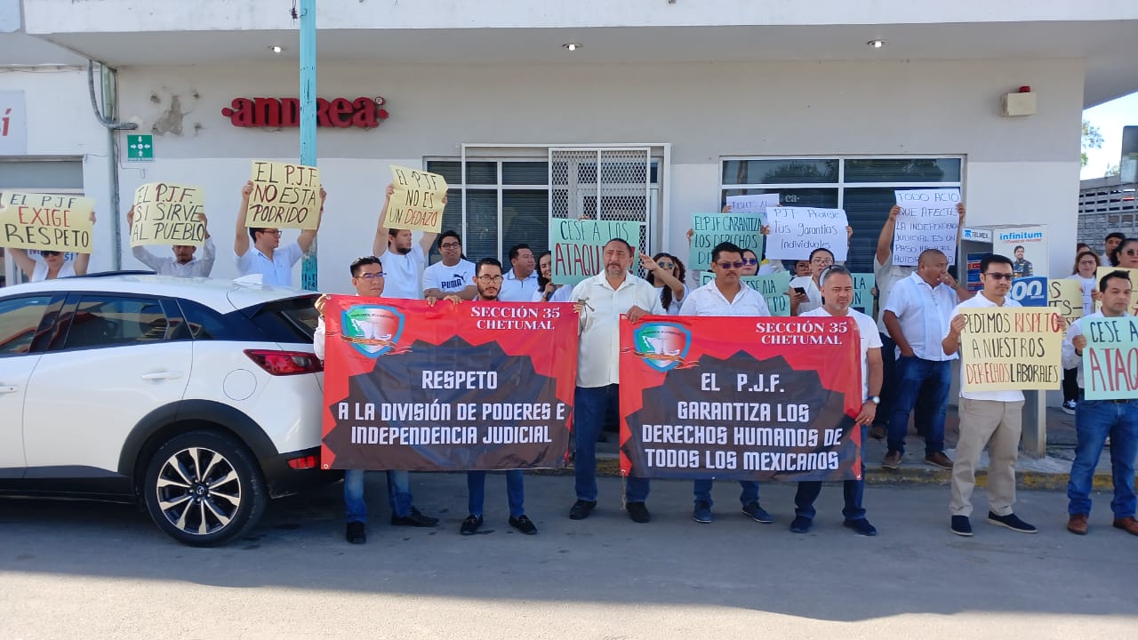 Por otra parte, en el juzgado primero de distrito, con sede en Chetumal, los manifestantes también mostraron lonas con mensajes como “Cese a los ataque”, “No más ataques a la división de poderes a la independencia del Poder Judicial”.