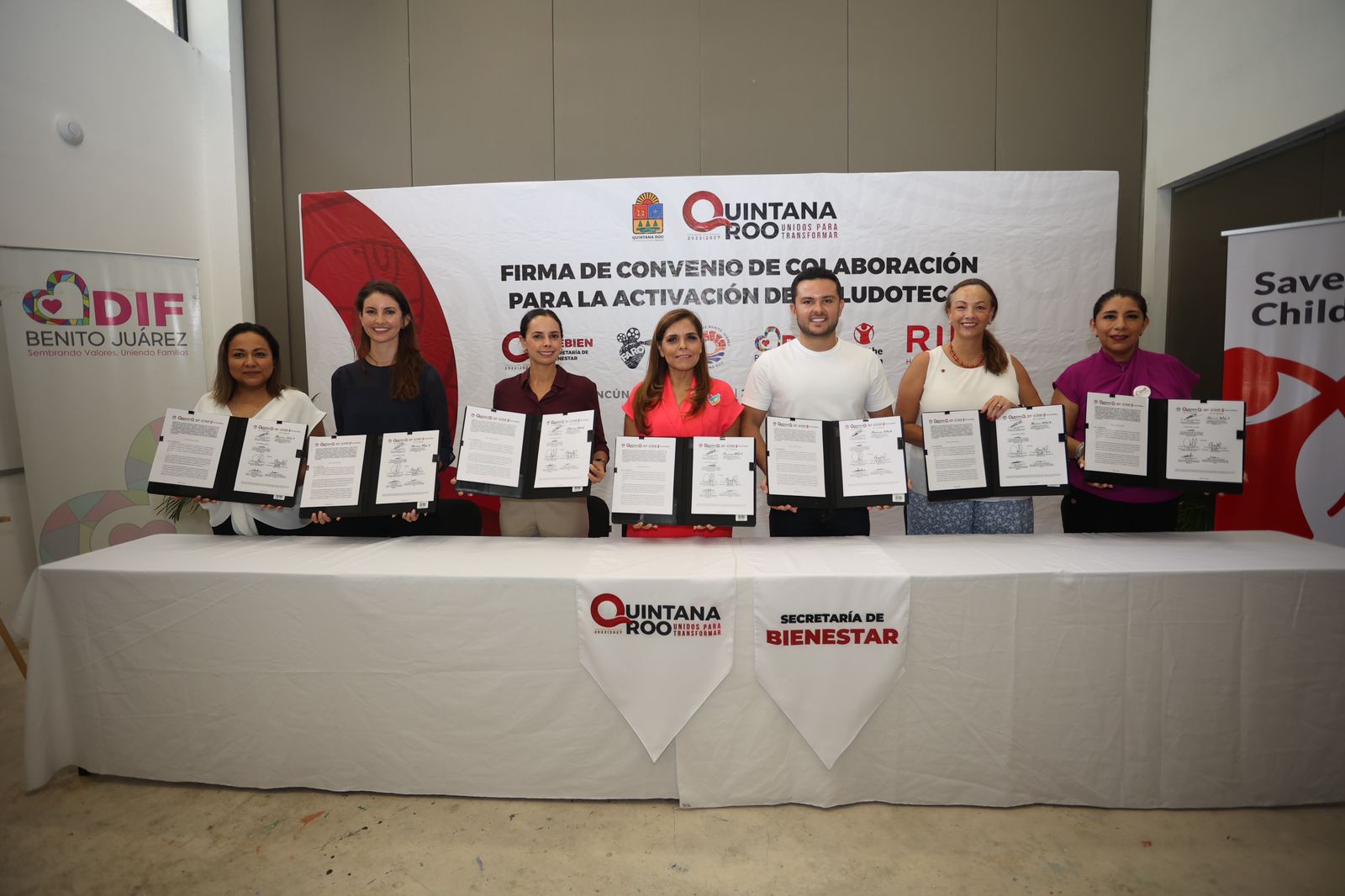 Luego de la firma del convenio de colaboración correspondiente a la activación de la ludoteca en la que también fue testigo de honor la presidenta honoraria del DIF Quintana Roo, Verónica Lezama Espinosa, la Primera Autoridad Municipal platicó con los niños sobre los acuerdos de convivencia del lugar como respetar a todos, escuchar con atención a quien esté hablando, esperar su turno, compartir materiales y juguetes, ser amables, entre otros.