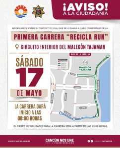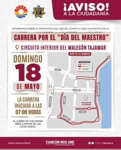 Por esta razón, se cerrarán los accesos al Malecón Tajamar por las avenidas Nichupté y Rambla, y se establecerá un acceso controlado por la avenida Sayil. Se prevé la participación de aproximadamente 500 corredores.