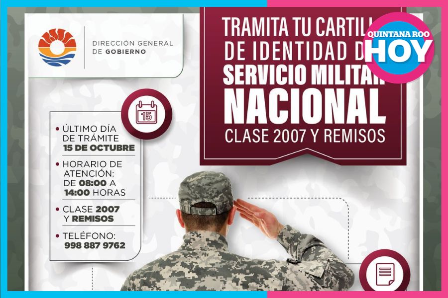 Cancún.- Con el respaldo de la Dirección de Gobierno y la Junta Municipal de Reclutamiento del Ayuntamiento de Benito Juárez, se informó que este miércoles 15 de octubre es el último día para realizar el trámite de la Cartilla de Identidad del Servicio Militar Nacional para la Clase 2007 y Remisos.