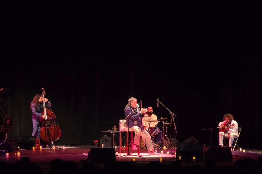 La noche tuvo muchos momentos especiales como la participación de la talentosa bailaora María Juncal, quien subió al tablao para acompañar al maestro con su arte, desatando una tormenta de emociones que llenó el teatro de energía y potencia femenina.