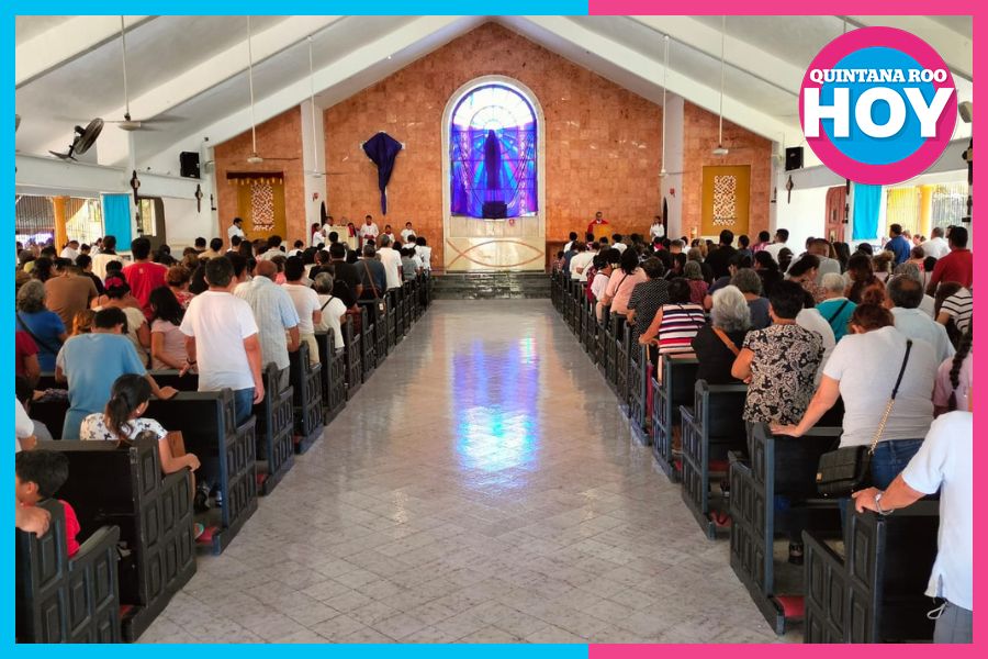 En este templo se efectuó uno de los 26 viacrucis organizados en distintos puntos de Cancún, incluidos algunos de los más concurridos, como el de la parroquia “Cristo Rey”, en el Parque de las Palapas, o el que se realiza en la Zona Hotelera.