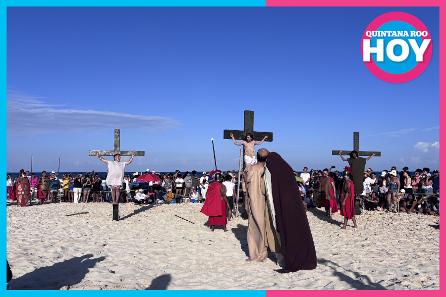 Cientos de fieles y turistas presenciaron la representación del Viacrucis viviente en Playa Delfines, un evento de Semana Santa que combina fe, tradición y belleza natural del Caribe mexicano.