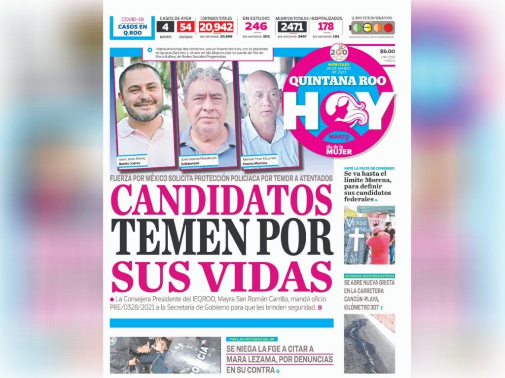 CANCÚN. Luego del asesinato de Ignacio Sánchez Cordero ocurrido el pasado 24 de febrero y quien sería el abanderado del Partido Verde ecologista de México (PVEM) para la presidencia municipal de Puerto Morelos, así como el de la candidata suplente a la presidencia municipal de Isla Mujeres por el partido político Redes Sociales Progresistas, Flor de María Ballina Sánchez, las alertas se activaron entre los aspirantes a un cargo de elección, por lo que el Instituto Electoral de Quintana Roo (Ieqroo) solicitó formalmente al Gobierno de Quintana Roo protección y seguridad a tres candidatos presidencias municipales del Partido Fuerza por México (FxM) y para los candidatos de la coalición “Va por Quintana Roo”.