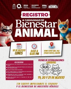 “El registro será este lunes 18 de agosto, de 2 a 6 de la tarde, en el domo Cedro, ubicado en la Supermanzana 260 en Cancún. Te esperamos, cuida tu mascota, ámala mucho, y siempre, dale esa oportunidad de ser parte de tu familia”, exhortó la titular del Ejecutivo.