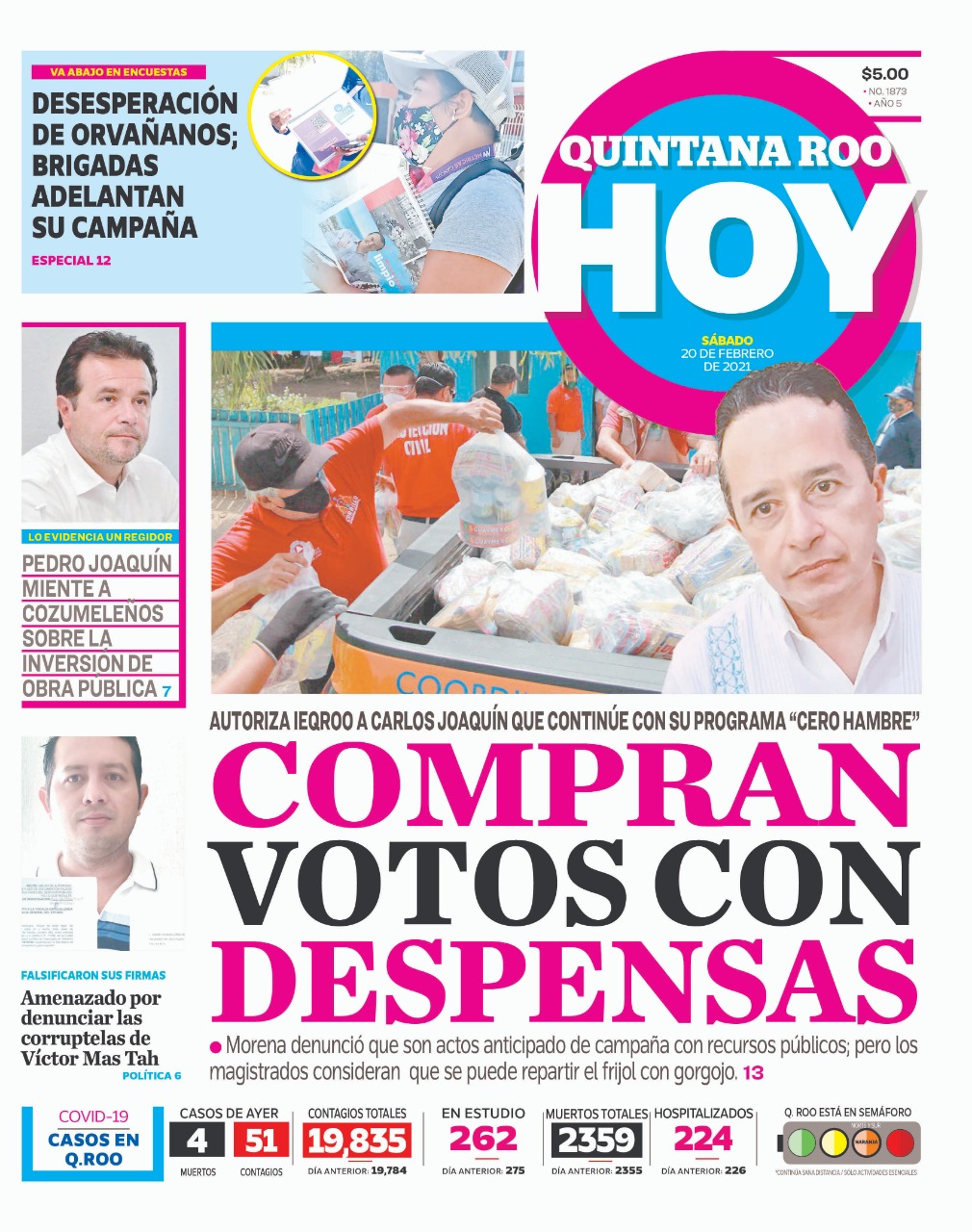A través del programa de apoyo alimentario “Hambre Cero”, que fue implementado por el gobernador Carlos Joaquín durante la emergencia sanitaria generada por el Covid-19, se entregaron un millón 42 mil 900 despensas, pero curiosamente lo detuvo en diciembre y lo reanudó el pasado 18 de enero, fecha a partir de la cual comenzaron a distribuir los empleados del gobierno estatal, más de 43 mil paquetes alimentarios destinados a familias de 27 colonias en el municipio Benito Juárez y 11 en el municipio de Othón P. Blanco.