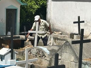 Señaló que cada año, cuando llega la temporada de del día de muertos, le dan una “manita de gato” al panteón al pintarlo, sin embargo, el lugar vuelve a quedar en el abandono.