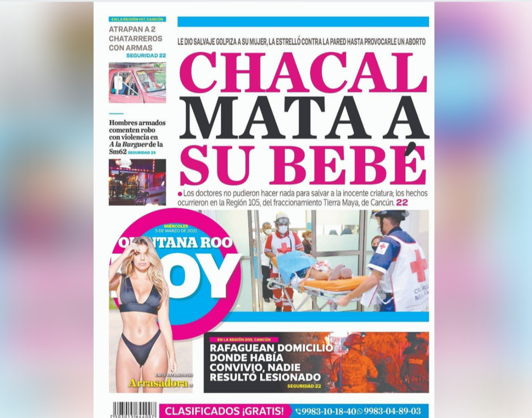 Cancún. Una mujer embarazada fue brutalmente golpeada por su pareja, por lo que terminó perdiendo a su bebé debido a los impactos que recibió.