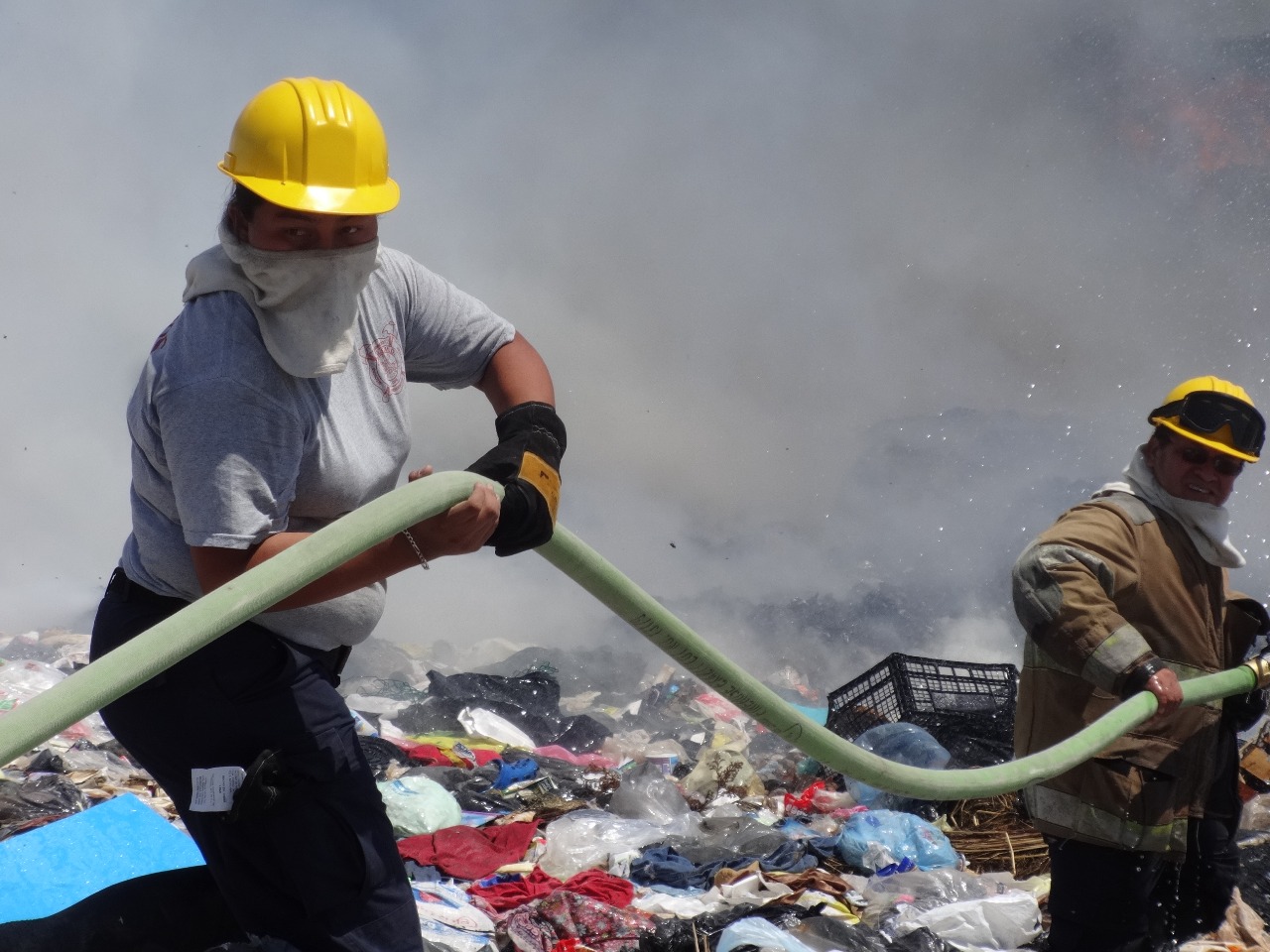 Al lugar arribaron bomberos, ambulancia, 30 elementos de fuerza y un equipo de trabajadores de Servicios Públicos Municipales, así como unidades carro bomba por parte de la Marina Armada de México, Protección Civil y de una empresa Constructora para combatir el siniestro en dos frentes: norte y sur, del destino final de residuos sólidos, el cual hasta el momento no ha podido ser controlado.