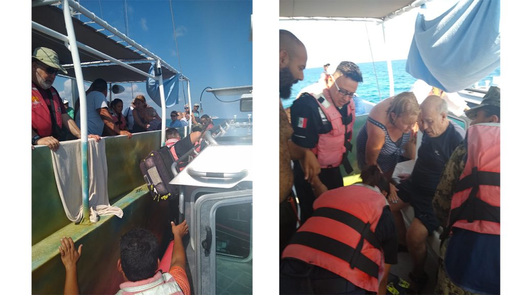 Al arribar al lugar señalado, se efectúo la evacuación médica de una persona de sexo masculino de 78 años de edad de nacionalidad estadounidense, con estado de salud estable, quien posteriormente fue trasladado al muelle de pescadores de Mahahual, para ser llevado a bordo de una ambulancia a un hospital de la localidad y recibir atención médica especializada.
