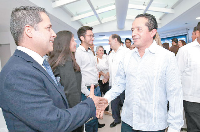 Cancún.- El gobernador Carlos Joaquín afirmó que Quintana Roo cuenta con un excelente producto turístico, infraestructura y calidad en el servicio, lo que ha permitido mantener el liderazgo en turismo y generar más empleos para la gente, al asistir con la presidenta del DIF Gaby Rejón de Joaquín a la celebración del 43 aniversario de la Asociación Mexicana de Agencias de Viajes (AMAV).