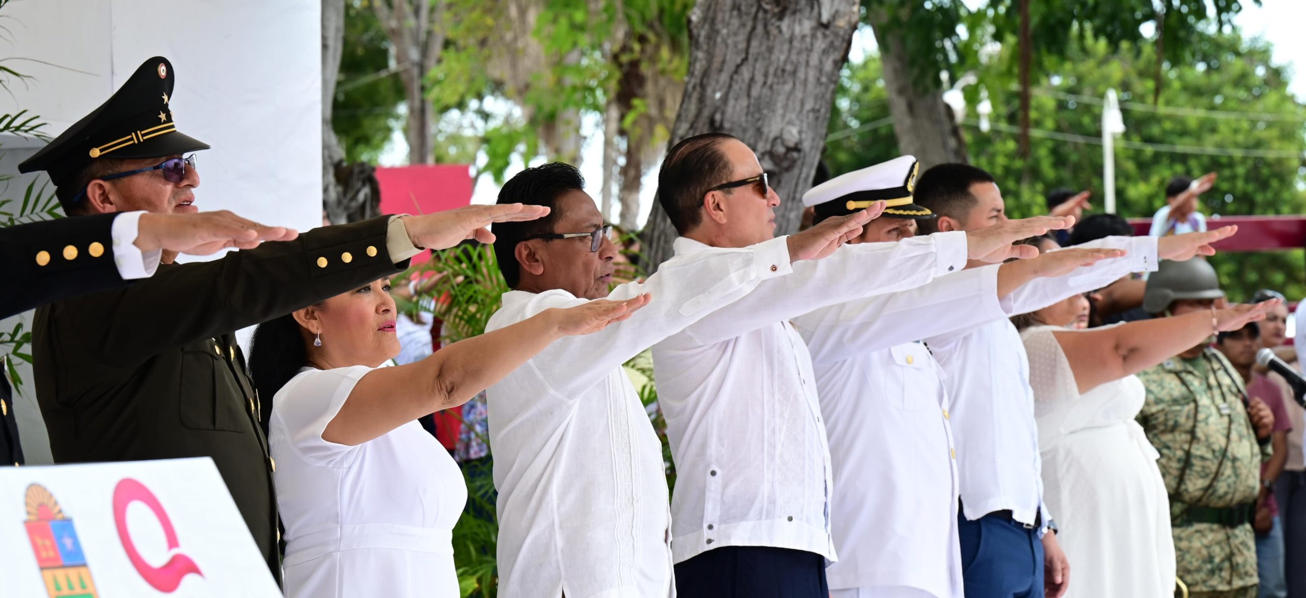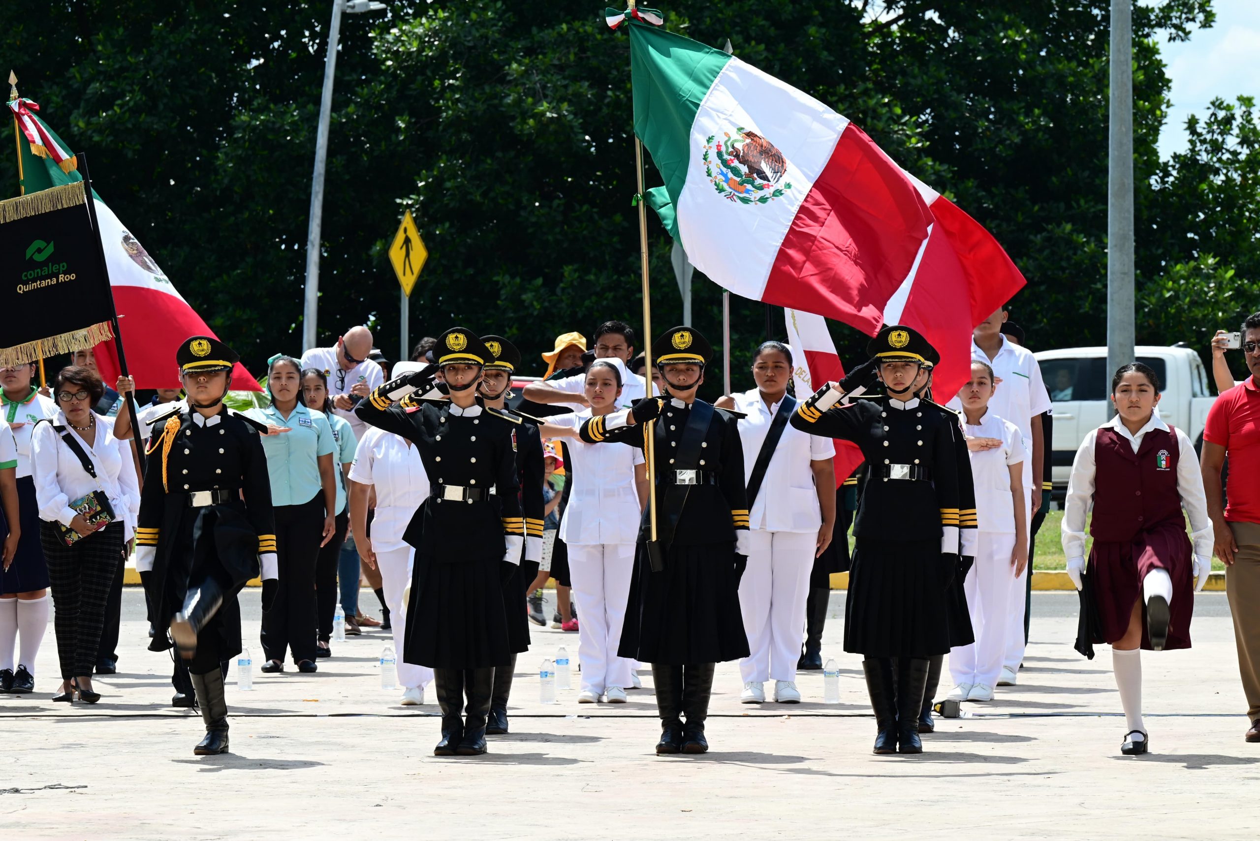 En representación de la gobernadora Mara Lezama Espinosa, el secretario de Educación del Estado, Carlos Gorocica Moreno, acompañado de las autoridades de la Zona Militar, la Décimo Primera Zona Naval y la Guardia Nacional, participó en el izamiento de la Bandera Nacional.